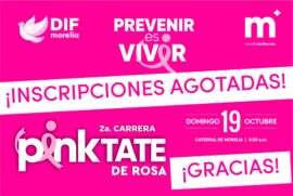 Morelia, Michoacán; 17 de octubre de 2025.– La presidenta honoraria del DIF Morelia, Paola Delgadillo Hernández, anunció que las inscripciones para la Segunda Carrera Atlética “Pinktate de Rosa” han quedado agotadas, gracias a la entusiasta respuesta de la ciudadanía que se ha sumado a esta causa solidaria en...