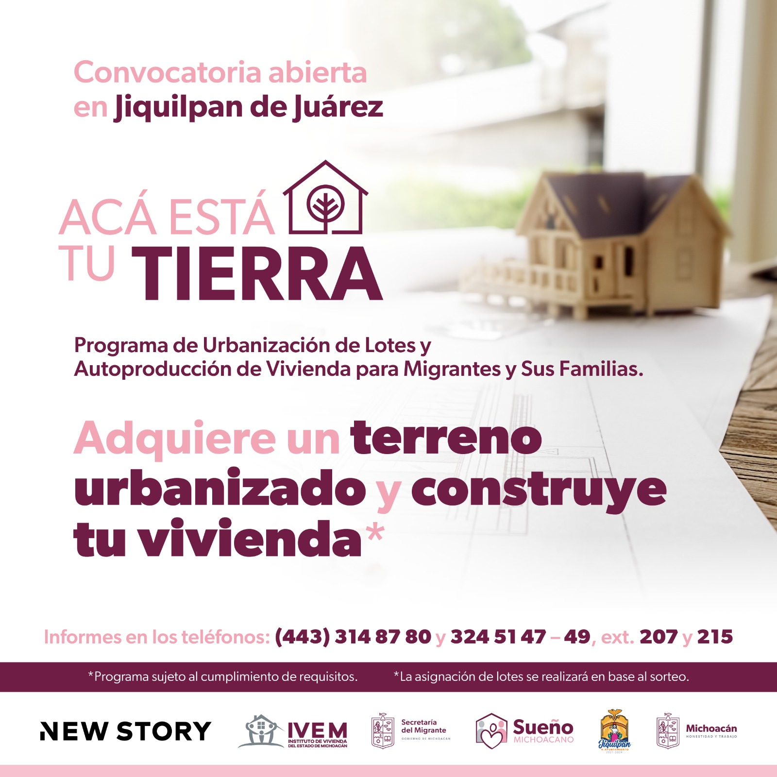 Así como los portales web de la Semigrante y del IVEM, donde se encuentra la convocatoria: https://migrante.michoacan.gob.mx/convocatorias/aca-esta-tu-tierra/ y https://ivem.michoacan.gob.mx/convocatorias/aca-esta-tu-tierra/, respectivamente.