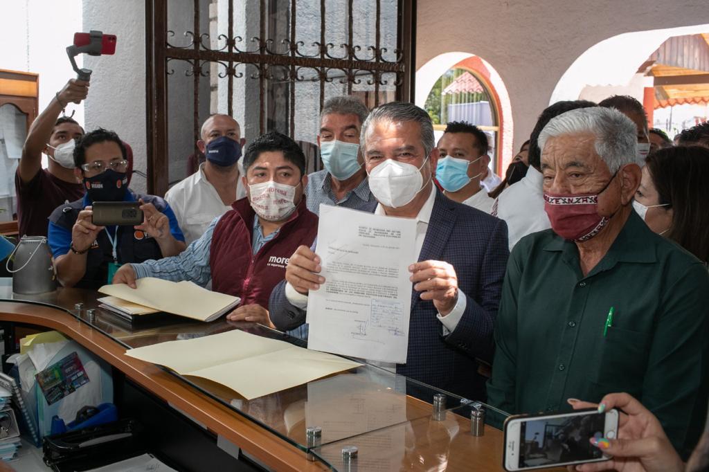 Morelia, Michoacán a 04 de Abril de 2021.- El coordinador estatal en Defensa de la Cuarta Transformación, Raúl Morón Orozco, presentó Juicio para la Protección de los Derechos Político Electorales del Ciudadano ante el Instituto Electoral de Michoacán (IEM), a fin de defender el anhelo de miles de michoacanas y michoacanos: transformar el esquema social, económico y político de la entidad.