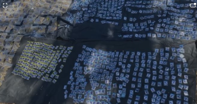 Al inspeccionar el lugar, fueron halladas 240 bolsas plásticas con marihuana y mil 83 envoltorios con una sustancia granulada, al parecer metanfetamina, las cuales fueron puestas a disposición de la autoridad competente. Una vez efectuadas las acciones correspondientes se procedió a la incineración del espacio provisional.
