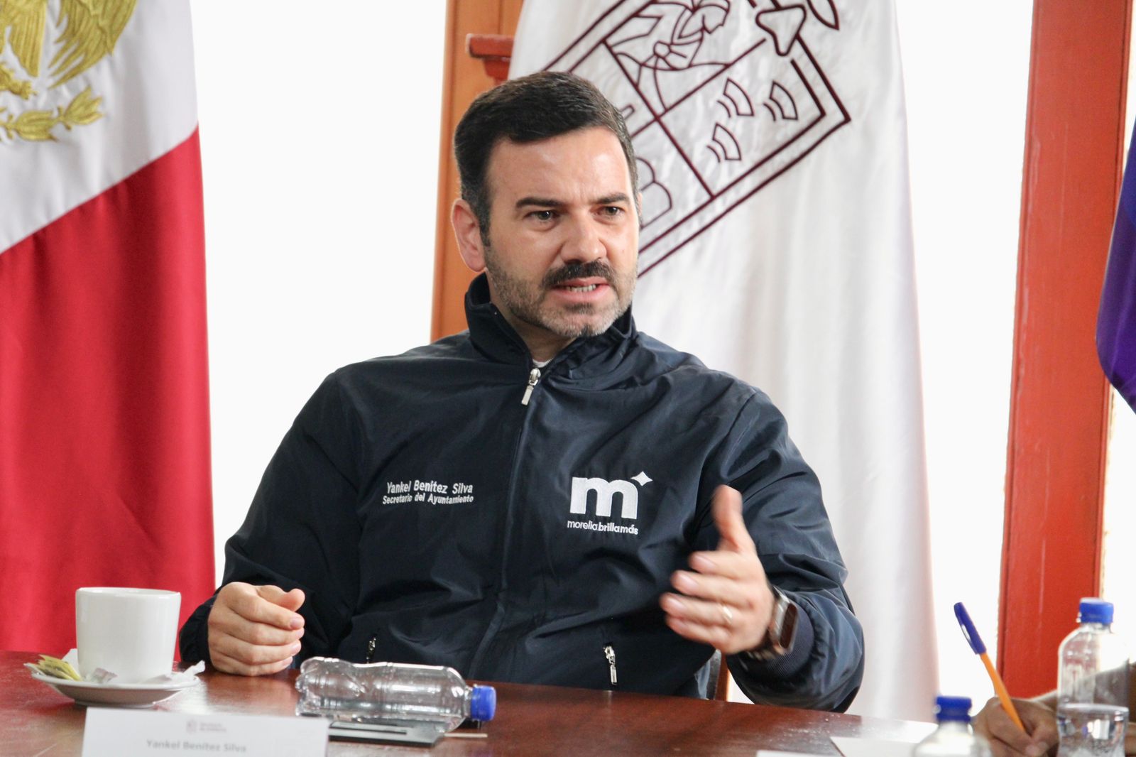 Morelia, Michoacán; 15 de agosto de 2025.- El Secretario del Ayuntamiento, Yankel Benítez Silva sostuvo una reunión con autoridades del Instituto Electoral de Michoacán (IEM), representantes del Gobierno del Estado, y habitantes de San Miguel del Monte, con el propósito de buscar acuerdos para la petición de consulta que definirá la conformación o no de esta tenencia como comunidad indígena con autogobierno y, en consecuencia, el ejercicio directo de su presupuesto.